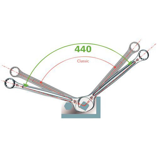 Profil OGV® offrant une puissance de serrage et une protection de l’écrou. Têtes fines facilitant l’accessibilité. Clé mixte avec reprise à 30°. Accès facilité aux écrous en série ou semi-encastrés : dégagement de l’œil incliné à 15°. Manche ergonomique. Finesse des têtes : meilleur compromis entre puissance et accessibilité. Confort accru : manche à section variable pour doubler la surface d’appui sur la main. Plus d’accessibilité avec l’œil : dégagement de l’œil (inclinaison à 15°) pour accéder à des écrous en série ou semi-encastrés. Profil OGV® : puissance et protection. Serrage plus puissant. Réduction des contraintes grâce aux larges surfaces de contact. Protection de l’écrou. Entraînement par les faces de l’écrou : les angles ne sont plus sollicités.
