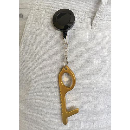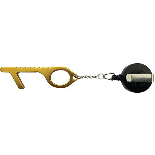 Clé sans contact no touch, Modèle: Avec enrouleur, Coloris: Or, Matériau: Aluminium, Hauteur: 84 mm