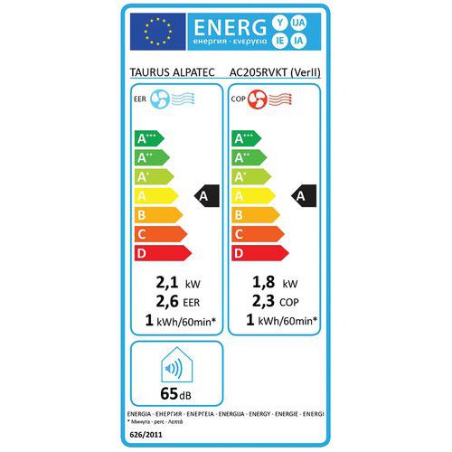 | Intitulé du produit | Climatiseur mobile réversible AC 205 RVKT 2050 W, Pour surface: 20 m², Débit d'air maxi: 380 m³/h |
