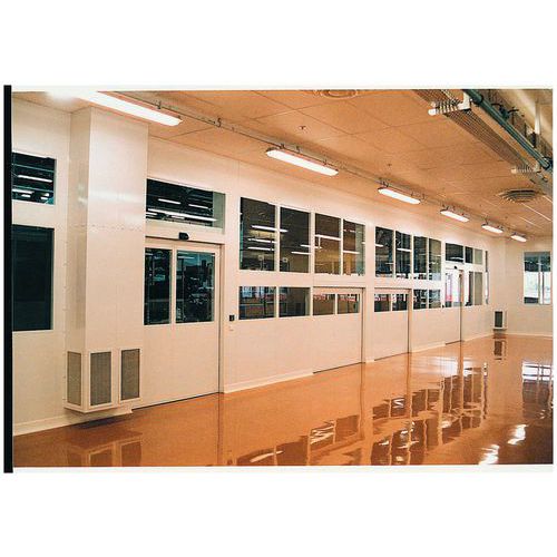 - Résistante aux ambiances agressives (humidité, poussière, bruits, température) grâce à sa double paroi acier et son isolation par laine minérale.