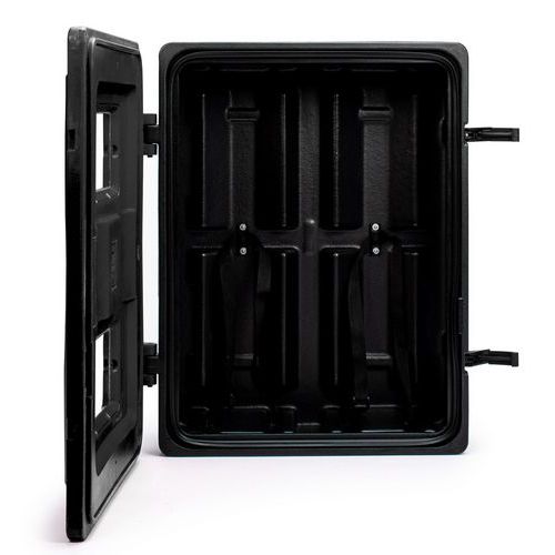 | Intitulé du produit | Coffre extincteur, Matériau: Polyéthylène haute densité, Coloris: Noir, Pour extincteur poids: 12 kg |