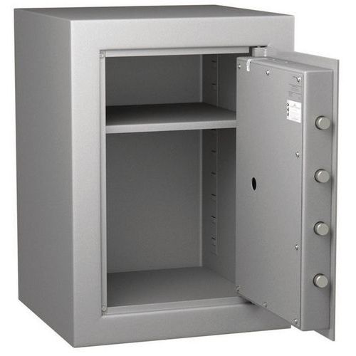 Coffre-fort série Vulcain de 40 à 205 litres. Protection Anti-effraction Norme Allemande VDMA niveau B. Blindage anti-perçage au manganèse du systéme de condamnation. Tablette réglable en hauteur. Livraison sur rendez-vous avec mise en place chez le client avec reprise des emballages pour recyclage. Rez-de-chaussée avec 2 marches maximum ou étage avec ascenseur. Maximum 20 mètres de roulage. Pour toutes demandes particulières de livraison, veuillez contacter notre Service Clients (accès difficiles, forte pente, terrain meuble).