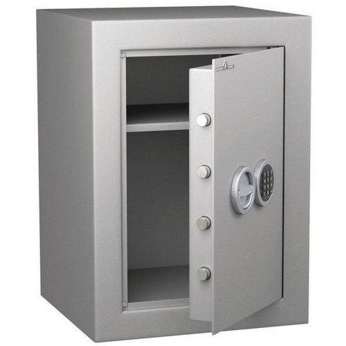 Coffre-fort série Vulcain de 40 à 205 litres. Protection Anti-effraction Norme Allemande VDMA niveau B. Blindage anti-perçage au manganèse du systéme de condamnation. Tablette réglable en hauteur. Livraison sur rendez-vous avec mise en place chez le client avec reprise des emballages pour recyclage. Rez-de-chaussée avec 2 marches maximum ou étage avec ascenseur. Maximum 20 mètres de roulage. Pour toutes demandes particulières de livraison, veuillez contacter notre Service Clients (accès difficiles, forte pente, terrain meuble). VDS