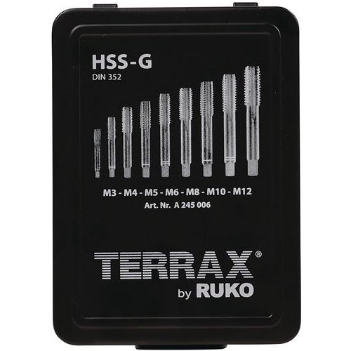 Coffret tarauds main HSS 21 pièces M3-M12, Usage: Perçage, Matériau: Acier