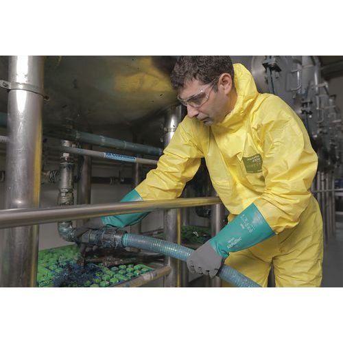 Protège contre divers produits chimiques inorganiques y compris les acides et les bases, tout en restant durable, légère et flexible.