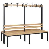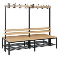 - Banc de vestiaire double face avec dossier et patères, de construction solide, avec ou sans grille-chaussures selon modèle.