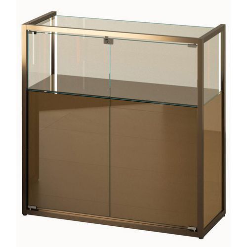 Comptoir exposition avec rangement, Socle coloris: Bronze, Hauteur: 95 cm, Largeur: 95 cm, Profondeur: 45 cm