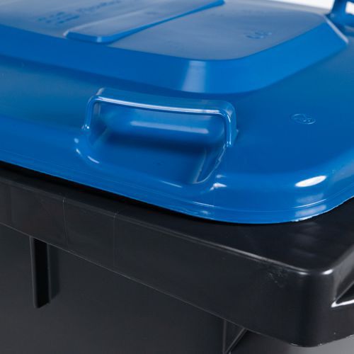Poubelle à roulettes économique en plastique de 240 L avec une gamme de couvercles colorés pour une élimination facile des déchets. Conteneur résistant aux UV. Déplacement facile du conteneur grâce à ces 2 roues solides. Entretien aisé du conteneur grâce à sa surface en plastique lisse. Couvercle de couleurs différentes pour faciliter le tri des déchets. Pour une utilisation en extérieur