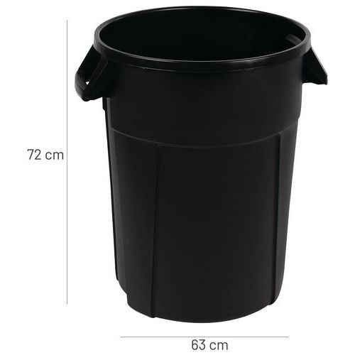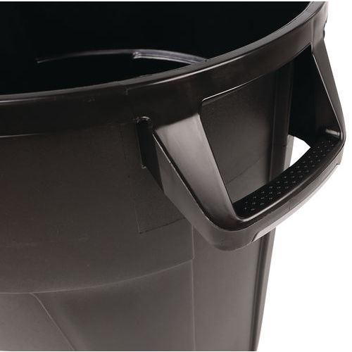 Conteneur cylindrique à poignées antidérapantes pour manipulation aisée.