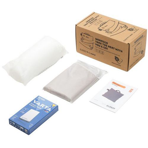 Warmigo peut être chauffé sur 3 niveaux : Haut : 75 °C (5 heures avec un seul power bank), moyen : 60 °C (7 heures avec un powerbank), faible : 50 °C (10 heures avec un powerbank).