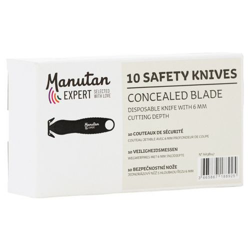 | Intitulé du produit | Couteau de sécurité avec lame protégée, Lame rétractable: non, Coloris: Noir, Usage alimentaire: non |
