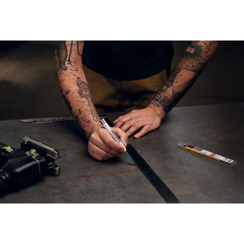| Intitulé du produit | Crayon pour chantier e-8880 avec recharge, Coloris: Gris, Ø: 44 mm, Longueur: 26 mm, Poids: 65 g |