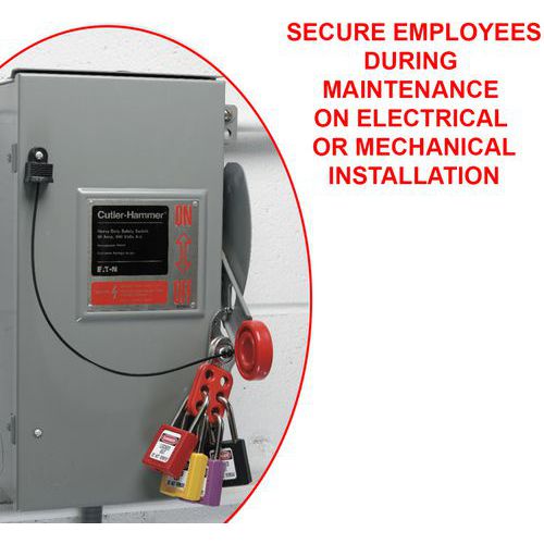 - Idéal pour la consignation d'équipement par plusieurs ouvriers, le crochet empêche l'utilisation de l'équipement durant la réparation ou les réglages.