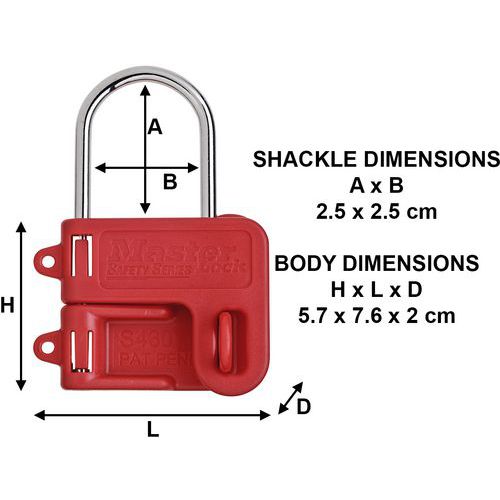 Le moraillon en acier Master Lock nº S430 présente une mâchoire interne d'un diamètre de 57 mm x 76 mm x 25 mm pouvant accueillir jusqu'à deux cadenas.