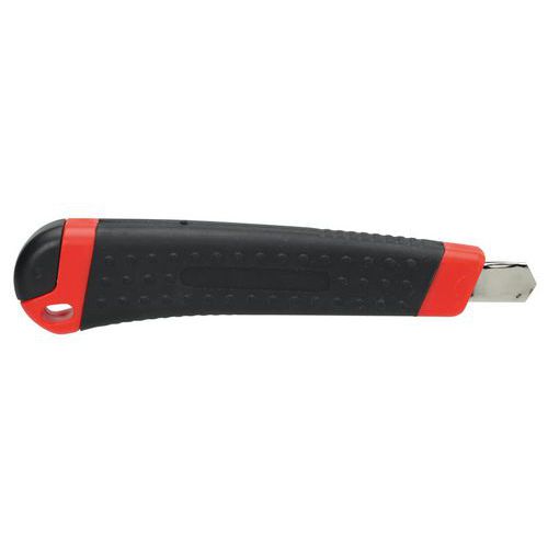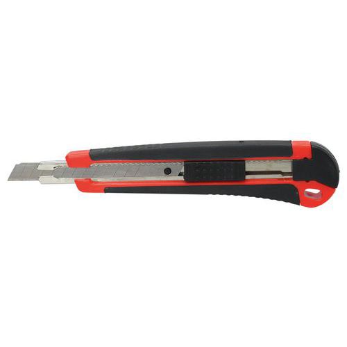 | Intitulé du produit | Cutter plastique bi-matière bouton poussoir autobloquant, Lame matériau: Acier, Lame rétractable: non |