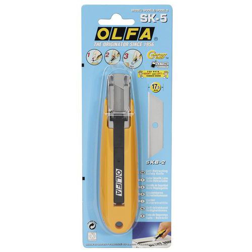 | Intitulé du produit | Cutter de sécurité ambidextre SK-5, Lame rétractable: oui, Usage alimentaire: non, Casse-lame intégré: non |