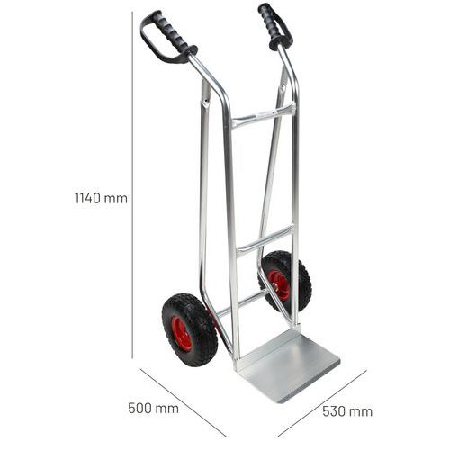 Diable aluminium 200kg, Force: 200 kg, Roue bandage: Pneumatique increvable, Roue Ø: 260 mm