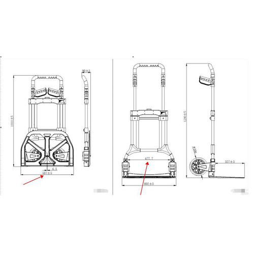 Diable pliant aluminium, Force: 200 kg, Roue bandage: Polypropylène, Largeur hors tout: 600 mm