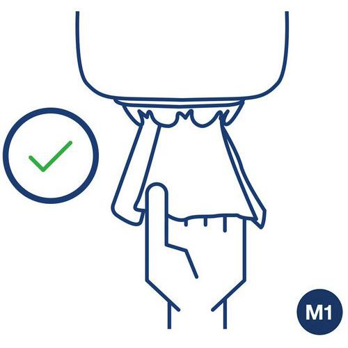 Le distributeur d’essuie-tout Tork M1 réduit les risques de contamination, car le papier est protégé à l’intérieur.
