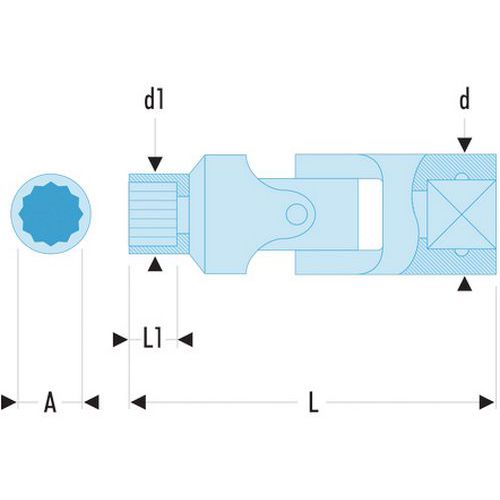 Douilles 3/8 articulées 12 pans en pouces