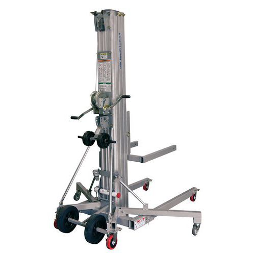 - Elévateur manuel de charge avec mât télescopique en aluminium léger et robuste.