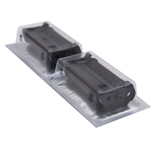 - Blister contenant 2 rouleaux d'encre noirs pour un remplacement facile et sans salissures.