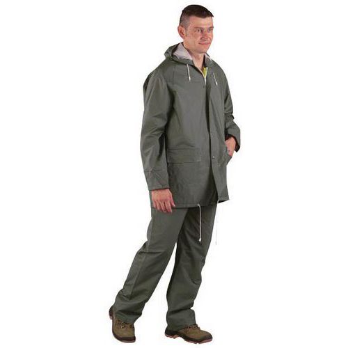 Ensemble veste-pantalon imperméable à double enduction (PVC support coton et polyester).