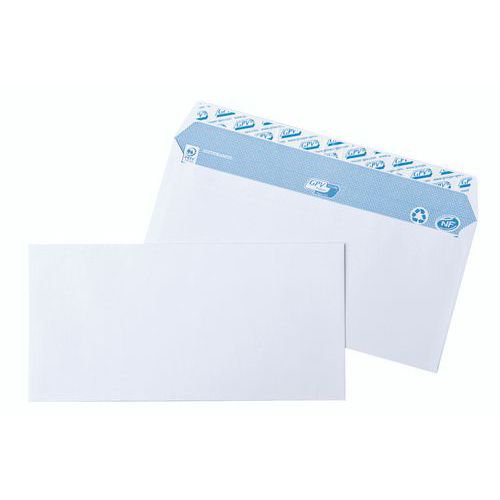 Enveloppe blanche avec fond bleu pour expédier votre courrier quotidien en toute confidentialité. Envoi sécurisé grâce à sa fermeture autocollante avec bande de protection et son collage renforcé. Papier ésistant de bonne qualité.