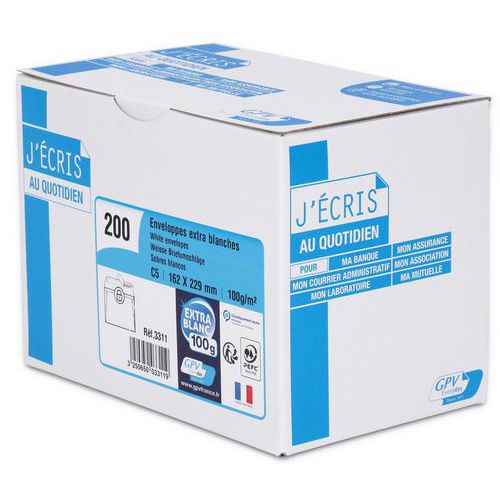 Enveloppe extra blanche 100 g/m² - Boîte 200 - GPV