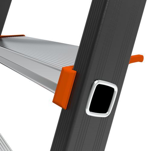 - Marches serties antidérapantes de largeur 110 mm en aluminium extrudé.