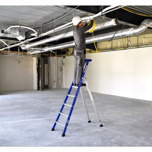 - Escabeau en aluminium laqué non salissant et à marches serties.