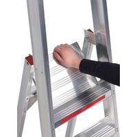 Escabeau professionnel simple accès en aluminium extrêmement léger avec des marches à profil creux. Les marches sont fixées à l’aide de rivets tubulaires. Ainsi, elles peuvent être remplacées rapidement en cas de besoin. Repliez et dépliez l'escabeau de manière rapide et aisée grâce au système de charnière auto-verrouillant sur la plate-forme.