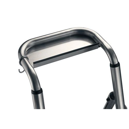 - Escabeau aluminium à garde-corps antibasculement avant.