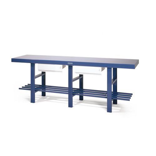 Établi en acier, Hauteur hors tout: 860 mm, Largeur hors tout: 3000 mm, Profondeur hors tout: 650 mm