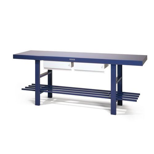 - Établi équipé d’un rayonnage destiné à accueillir votre matériel.