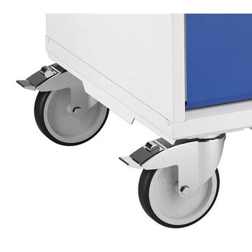 Équipé de 4 roues en caoutchouc, dont 2 roues pivotantes avec frein.