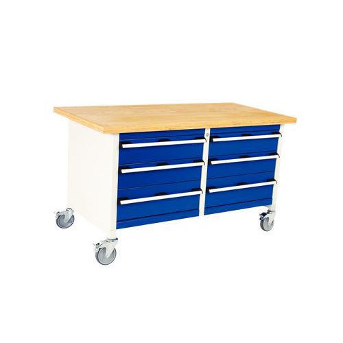 | Intitulé du produit | Établi roulant monobloc avec tiroirs, Hauteur hors tout: 840 mm, Nb de tiroirs: 6, Largeur hors tout: 1500 mm |