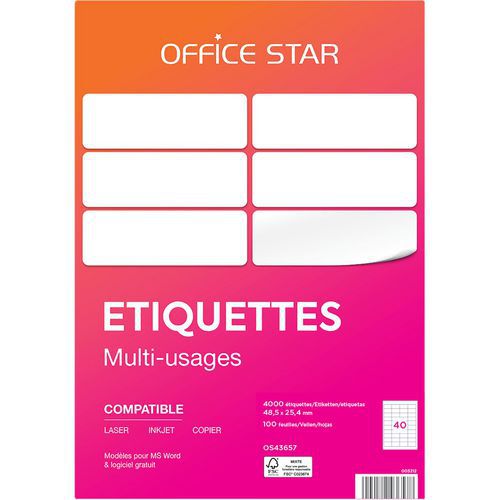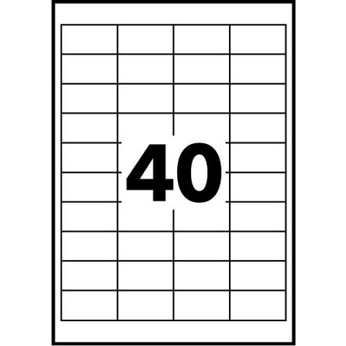 Étiquette multi-usages, Nb d'étiquettes/planche: 40, Nb d'étiquettes: 4000, Étiquette longueur: 48.5 mm Étiquette multi-usages, Nb d'étiquettes/planche: 40, Nb d'étiquettes: 4000, Étiquette longueur: 48.5 mm