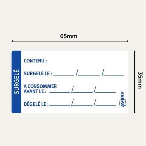 | Intitulé du produit | Etiquettes surgélation traçabilité alimentaire pré-imprimée, Nb d'étiquettes/planche: 200 |