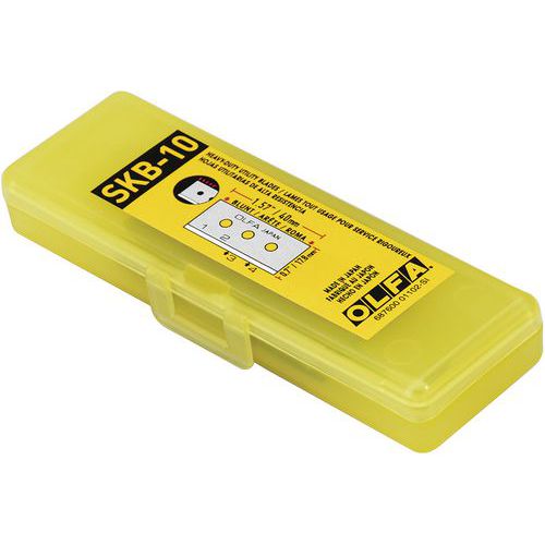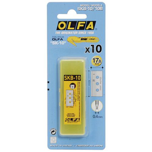 | Intitulé du produit | Etui de 10 lames à cutter SKB-10, Matériau: Acier, Lame largeur: 17.8 mm, Lame longueur: 40 mm |