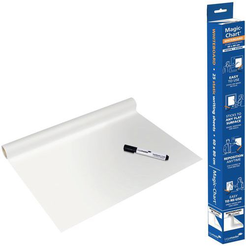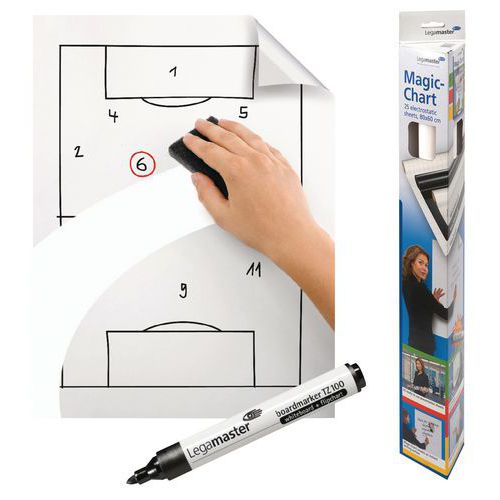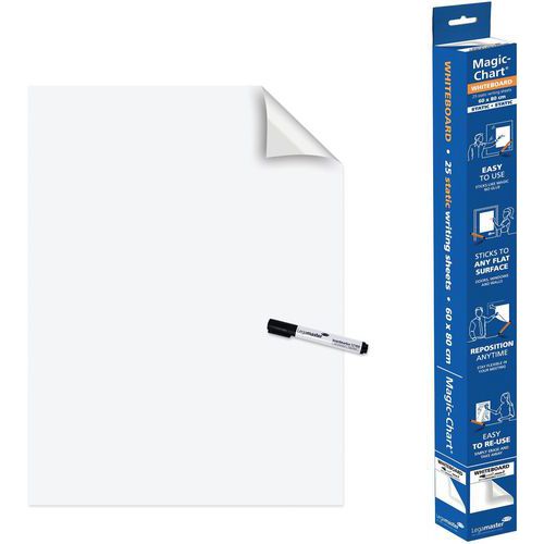 | Intitulé du produit | Feuilles électrostatique blanches Magic Chart, Surface d'écriture: Papier, Hauteur: 80 cm, Magnétique: non |