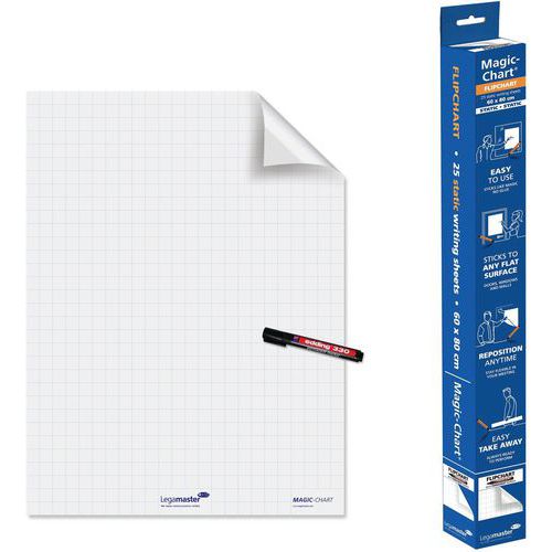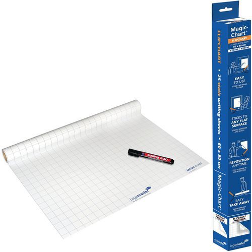| Intitulé du produit | Feuilles électrostatiques quadrillées Magic Chart, Surface d'écriture: Papier, Hauteur: 80 cm |