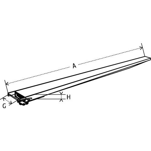 Installation rapide, saisie direct par le chariot élévateur. Convient aux charges longues. Rallonges fermées en partie avant et arrière pour une bonne rigidité. Blocage des rallonges derrière le talon des fourches pour une sécurité optimale. La charge maxi s’entend pour un poids uniformément réparti en bout de rallonge.
