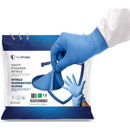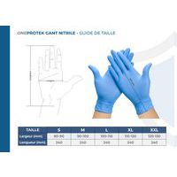 - Le gant nitrile en sachet OneProtek est ambidextre et non poudré.