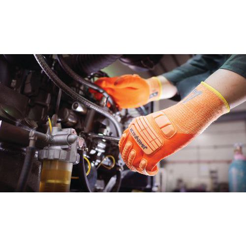 - Couleur haute visibilité facilitant la localisation des mains de l'opérateur pour plus de sécurité.