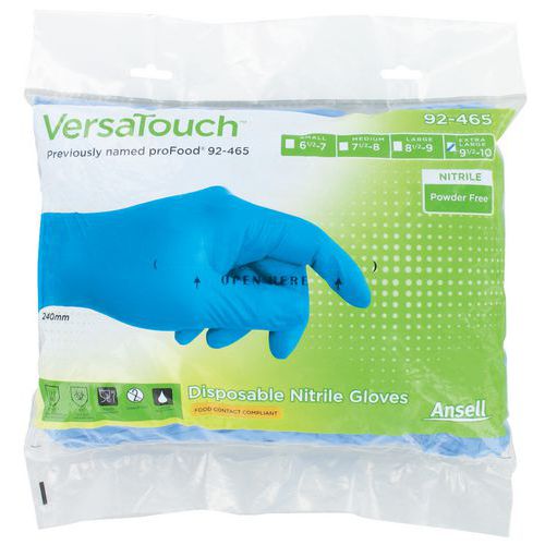 Les gants en nitrile bleu foncé VersaTouch® 92-465 sont conformes aux normes de manipulation des aliments et conviennent à un large éventail de tâches liées à la transformation des aliments.