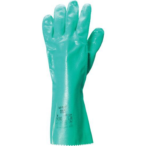 | Intitulé du produit | Gants de protection chimique Alphatec®, Matière: Nitrile, Coloris: Vert, Gant taille: 8 |