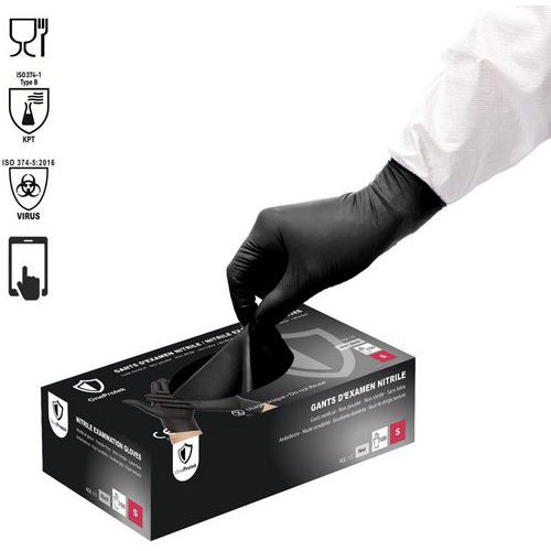 Gants d'examen Nitrile, Matière: Nitrile, Usage alimentaire: oui, Coloris: Noir, Gant taille: 7