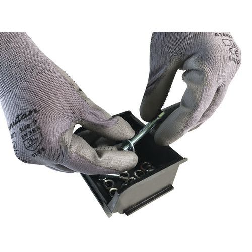 - Gants de manutention confortables via mailles fines extensibles (jauge 15).