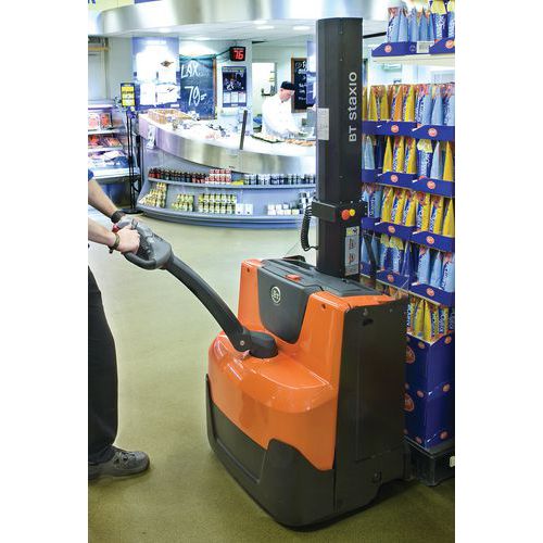 - Gerbeur électrique ergonomique équipé d'un système de Click-2-Creep permettant d'améliorer la maniabilité dans des espaces exigus.